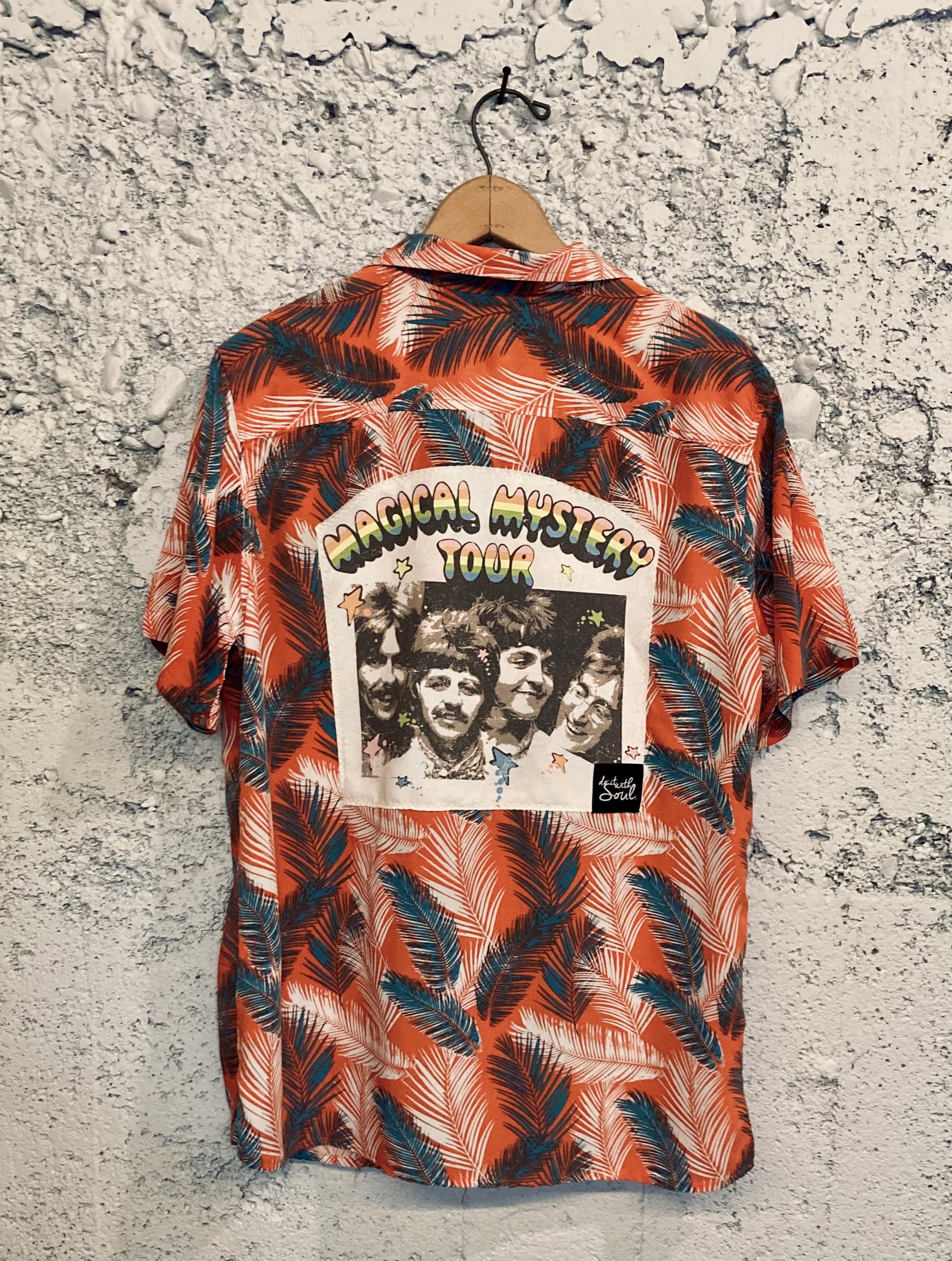 Upcycled medium weight, durable cotton button down. Perfect for the beach. One of a kind.