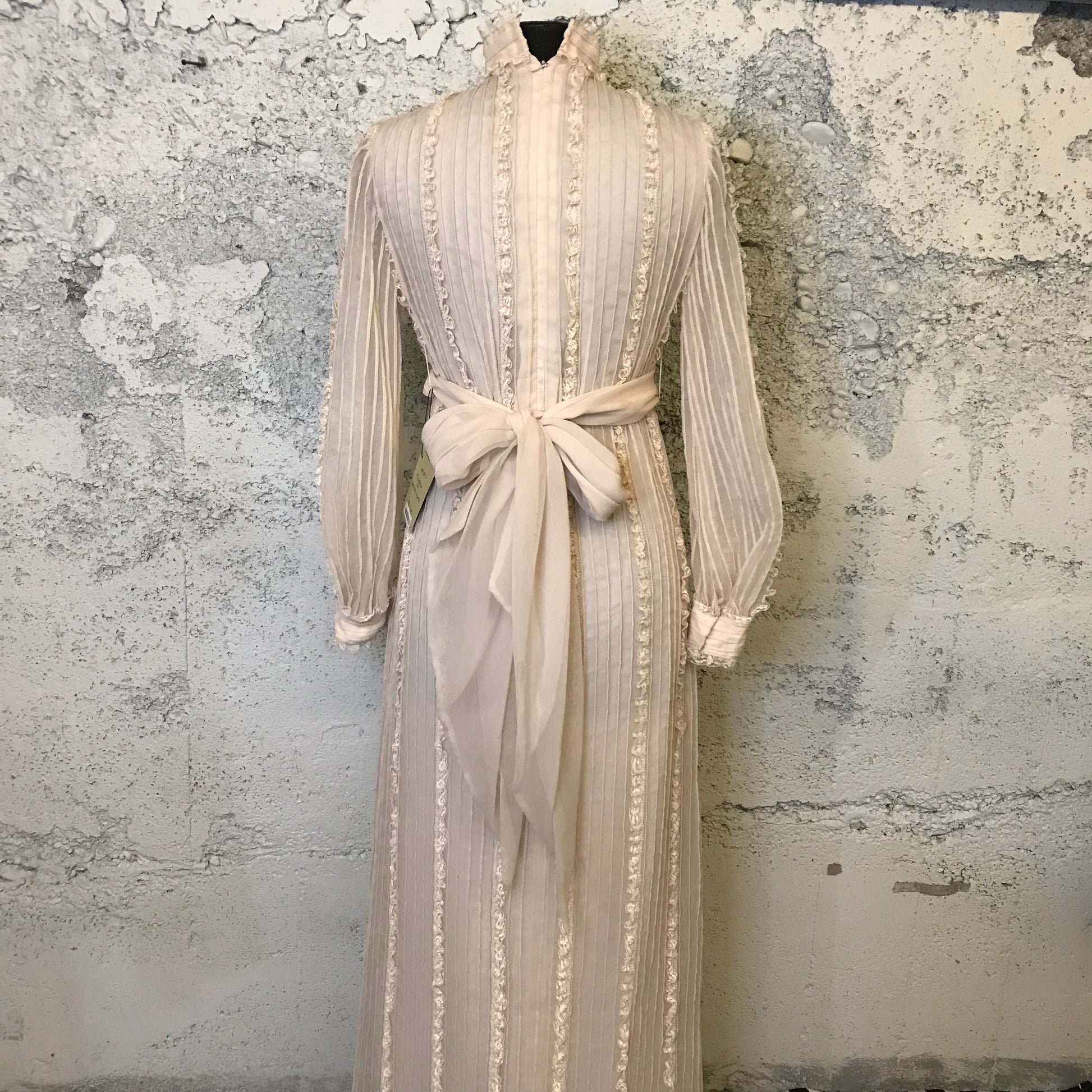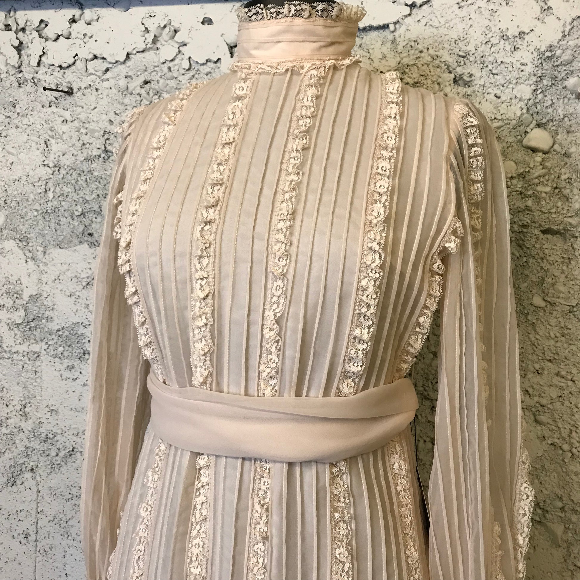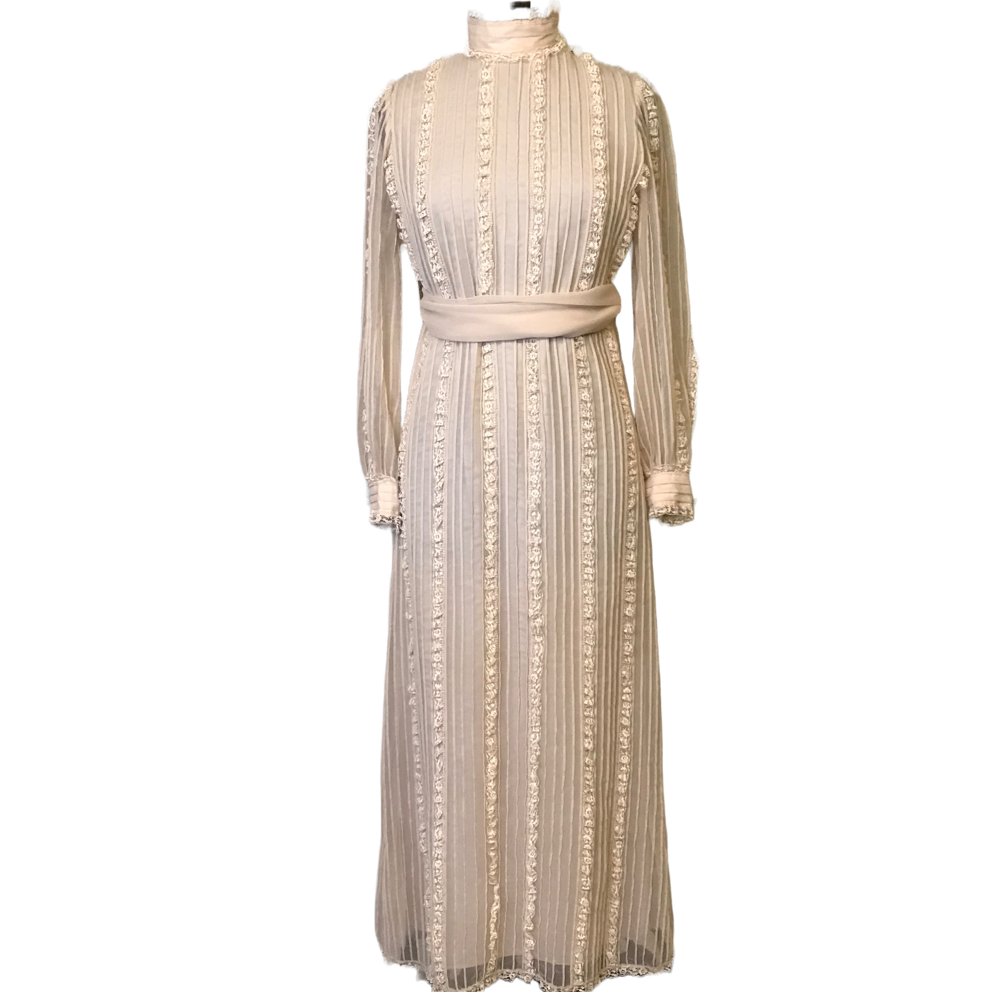 maxi dress with ruffled trim, ribbon belt, and high neckline #cottagecore #vintage #weddingdress