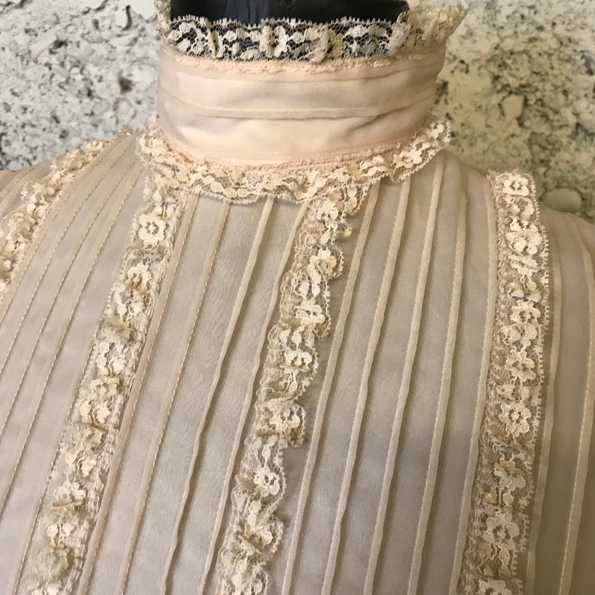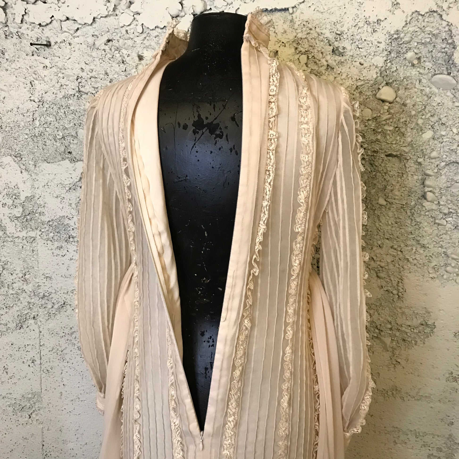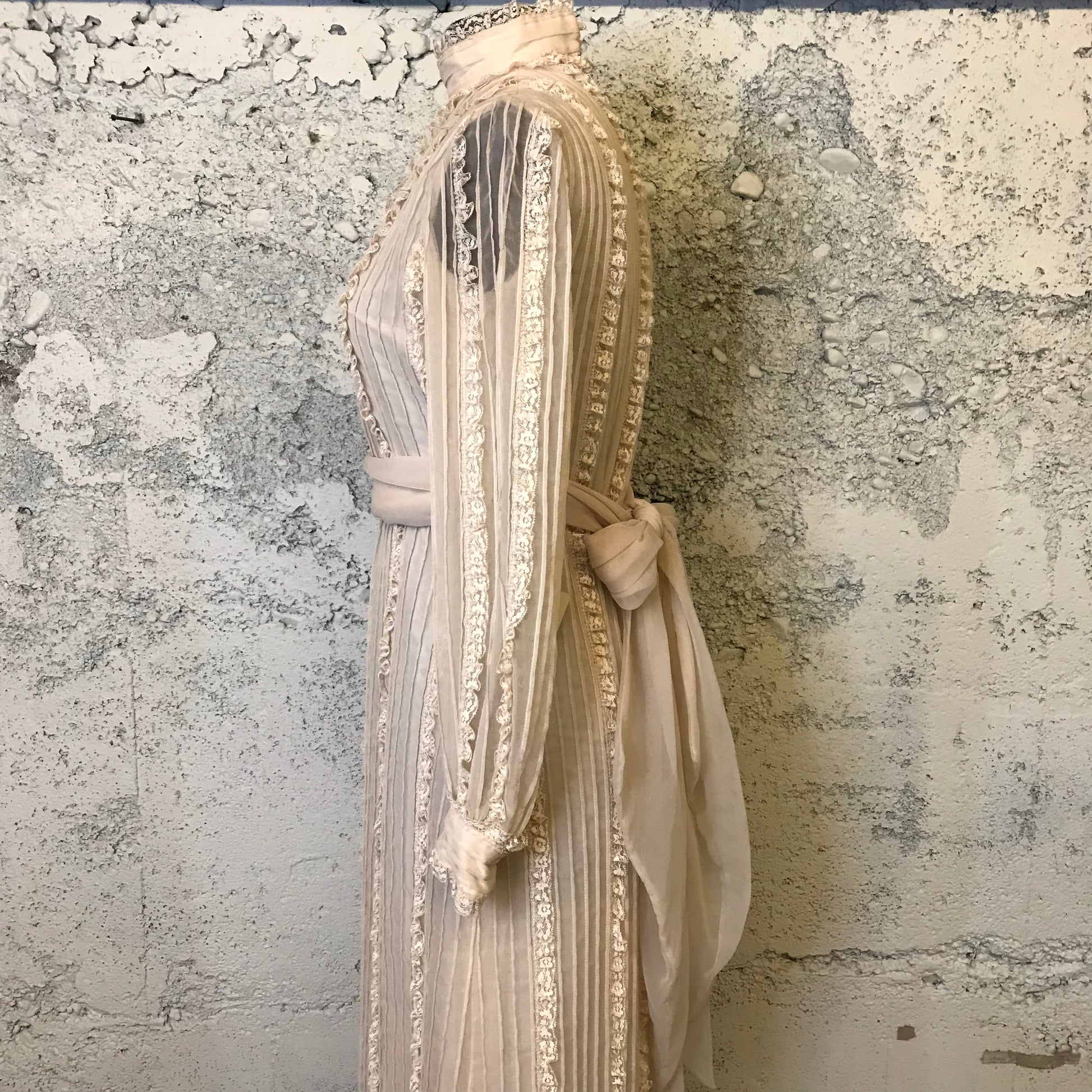 maxi dress with ruffled trim, ribbon belt, and high neckline #cottagecore #vintage #weddingdress