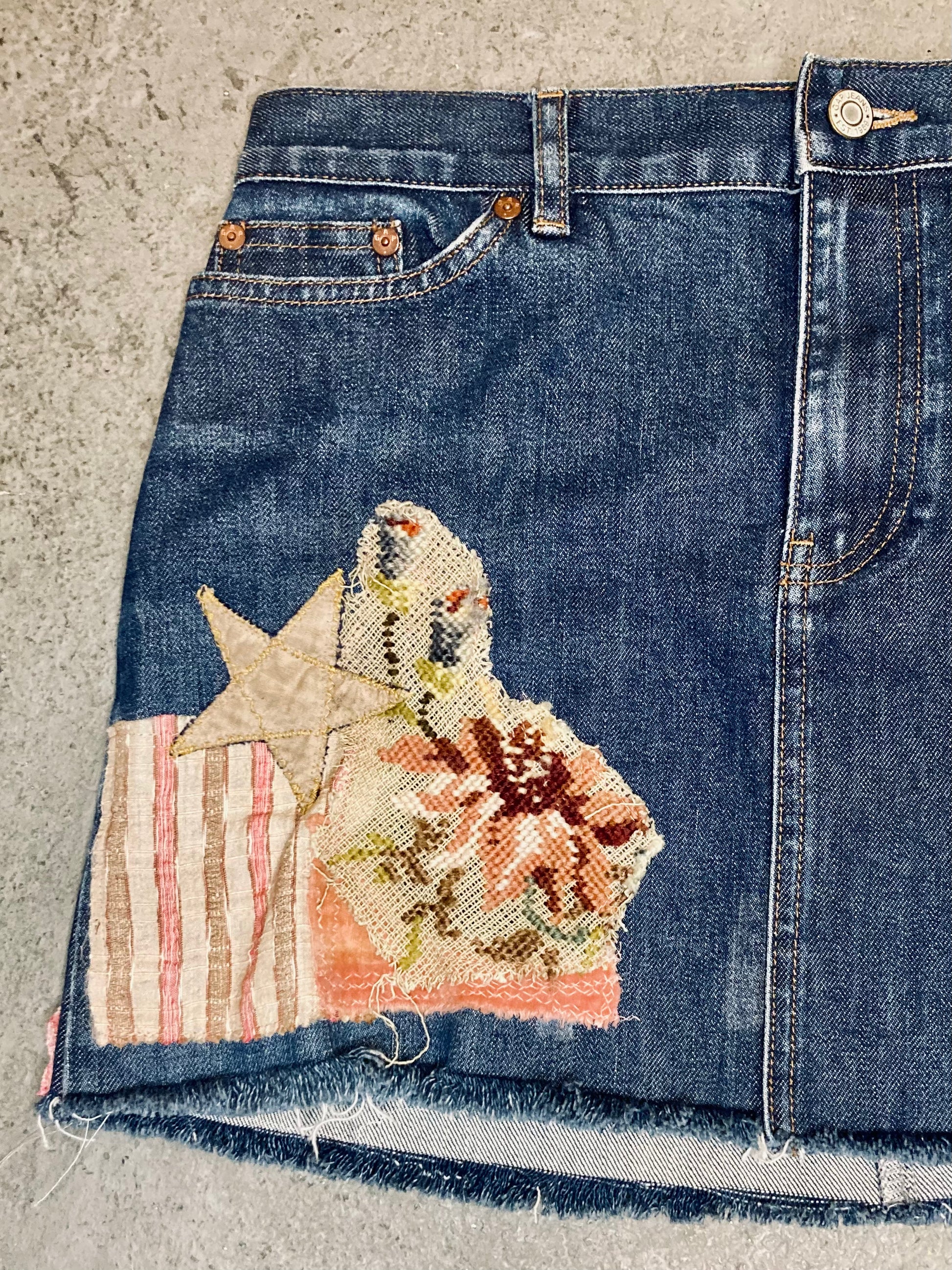 Show off your style with this one-of-a-kind Heathers Patchwork Skirt.
