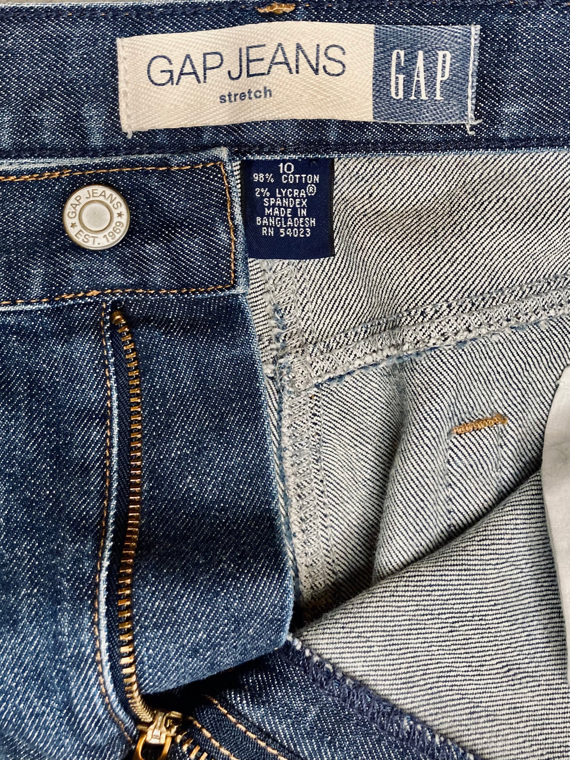 Uniquely distressed paint stains and/or frayed edges galore. One of a kind & unique.