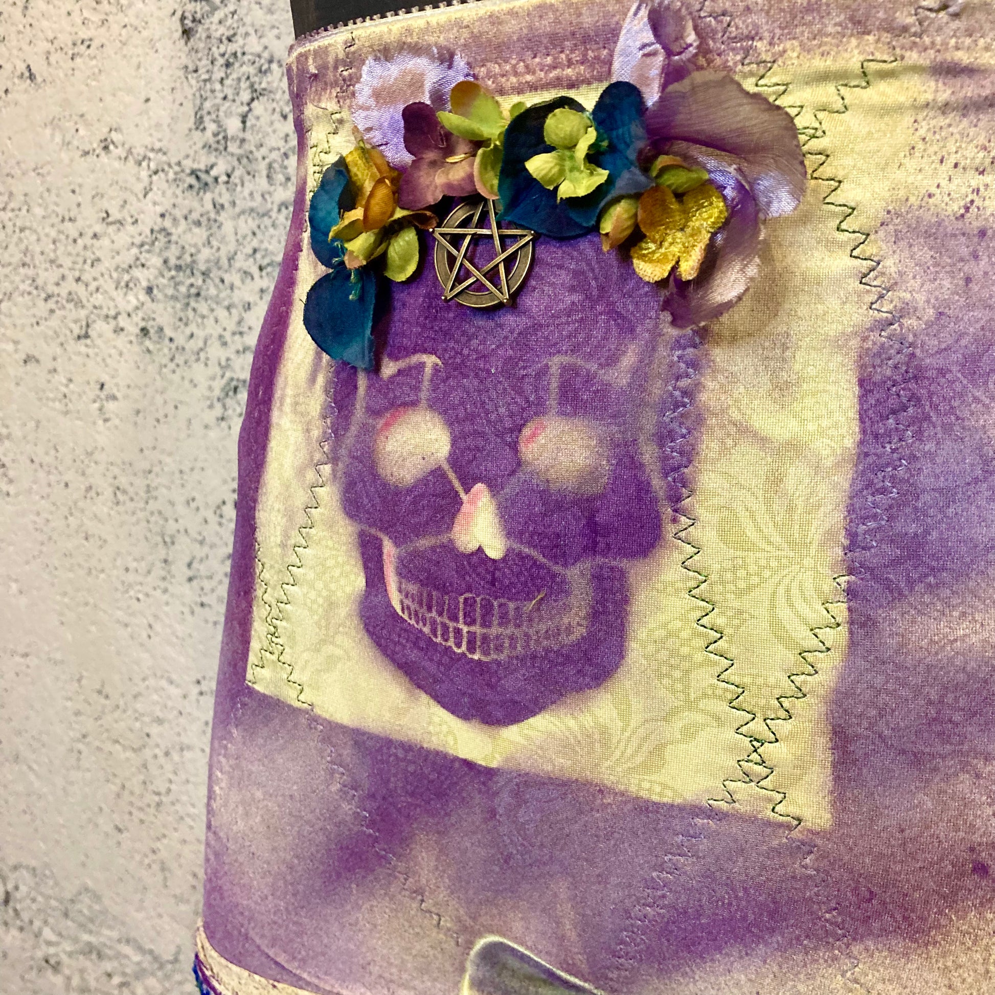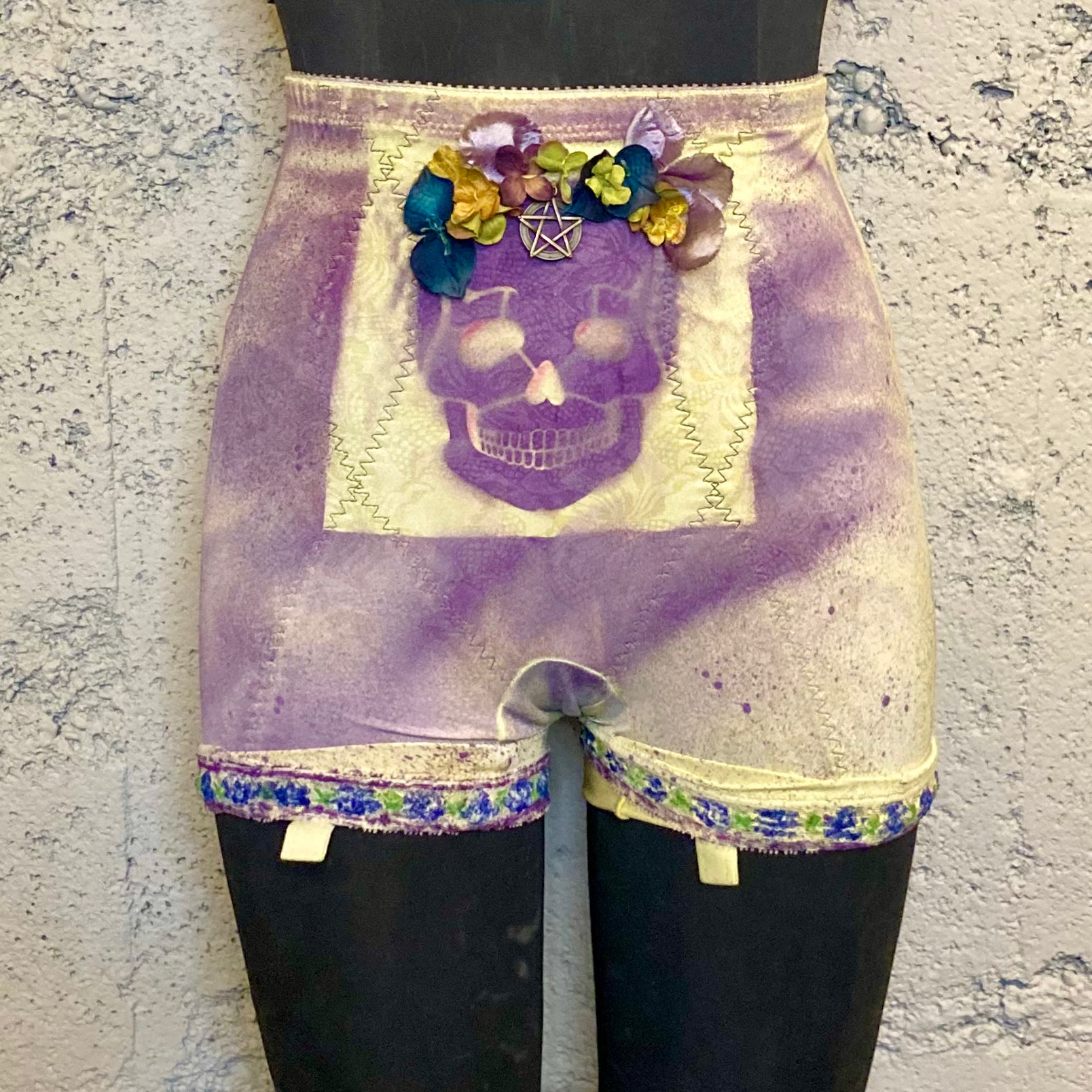 Uniquely distressed paint stains and/or frayed edges galore. One of a kind & unique.
