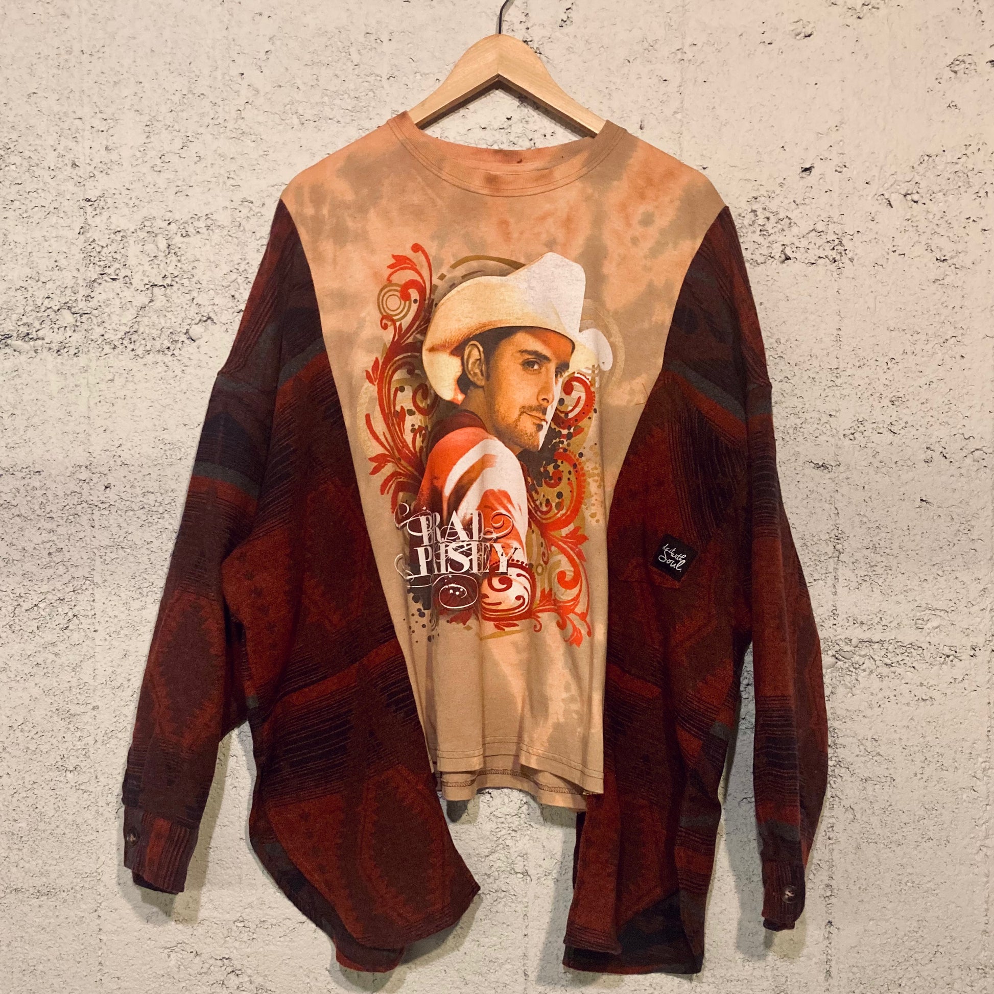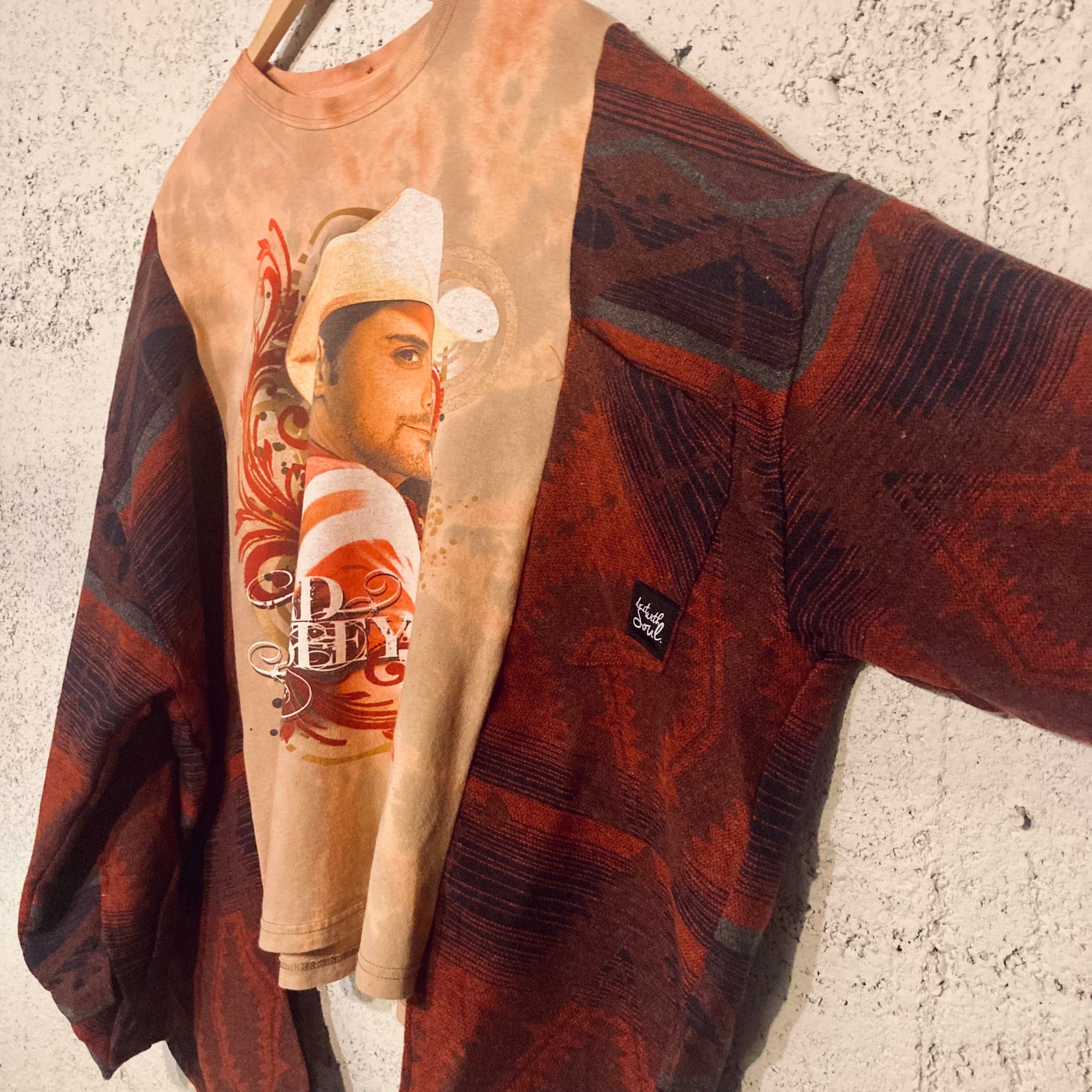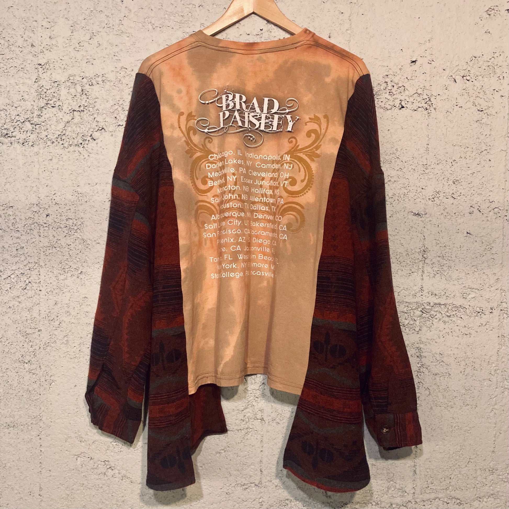 Upcycled vtg Brad Paisley tour tee, appropriate wear and tear considering age. Thicker weight, tans and pastel peach tie dye